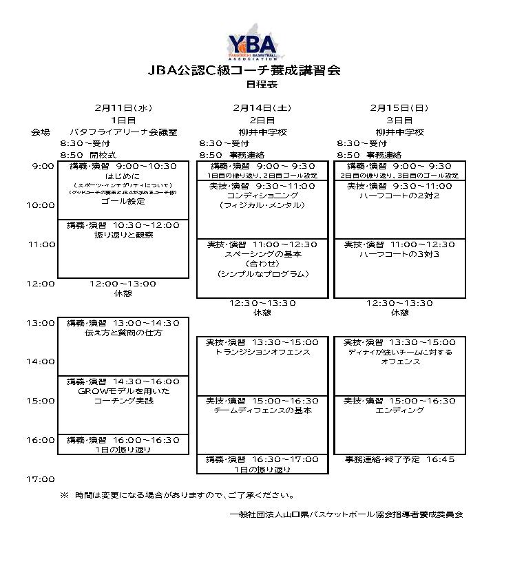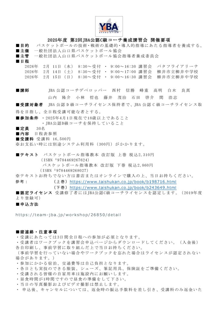 第2回JBA公認C級コーチ養成講習会(2/11,14,15)