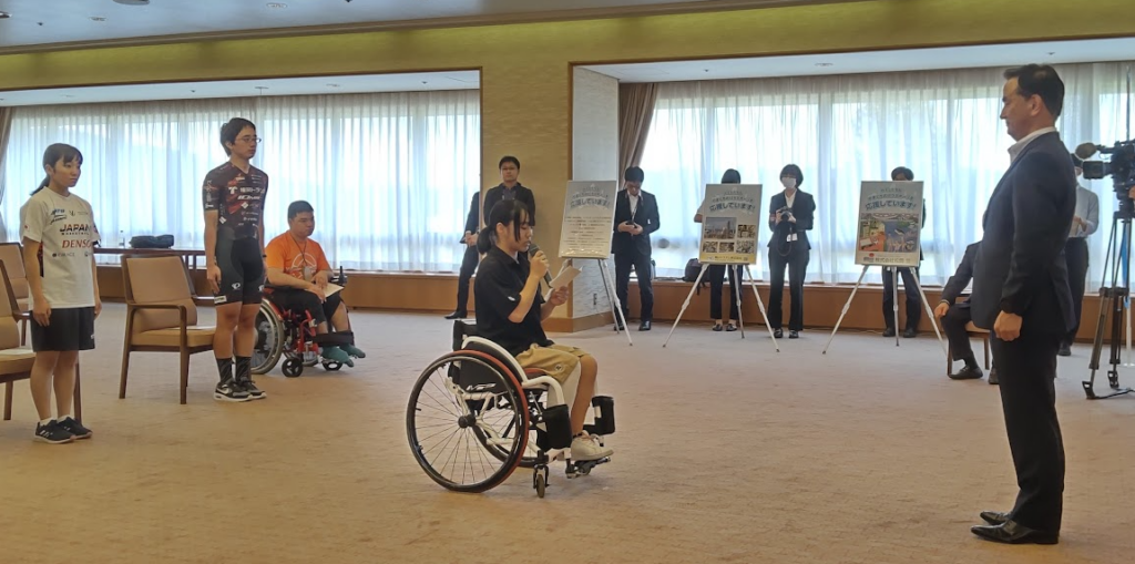 上田選手は、5人のパラアスリートを代表して、お礼のことばを述べました。