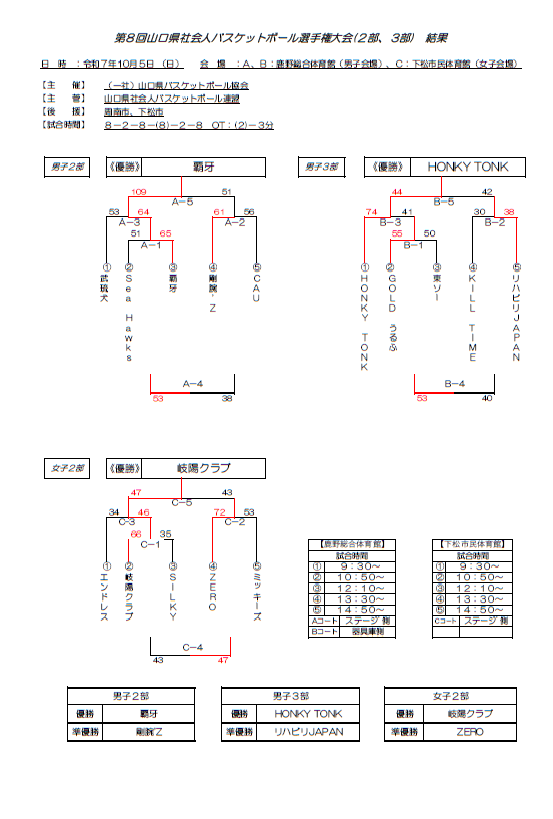 第8回山口県社会人バスケットボール選手権大会(2部、3部)