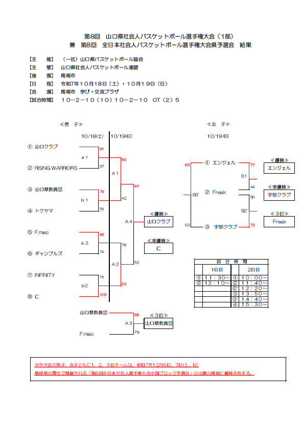 第8回山口県社会人バスケットボール選手権大会 兼 第8回全日本社会人バスケットボール選手権大会県予選会