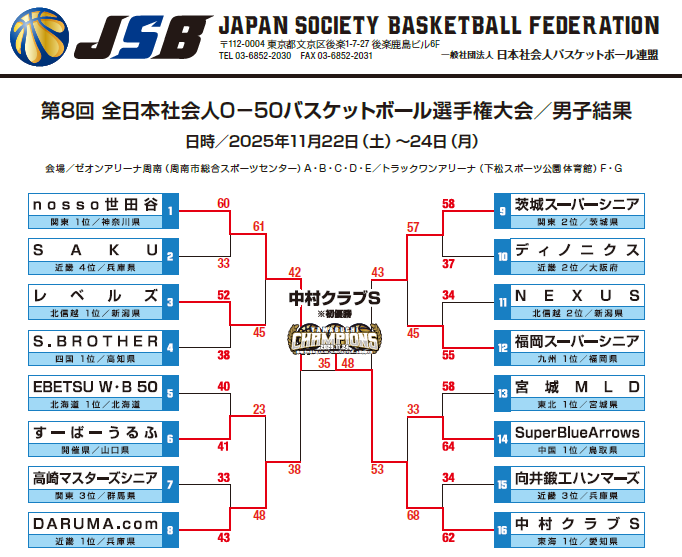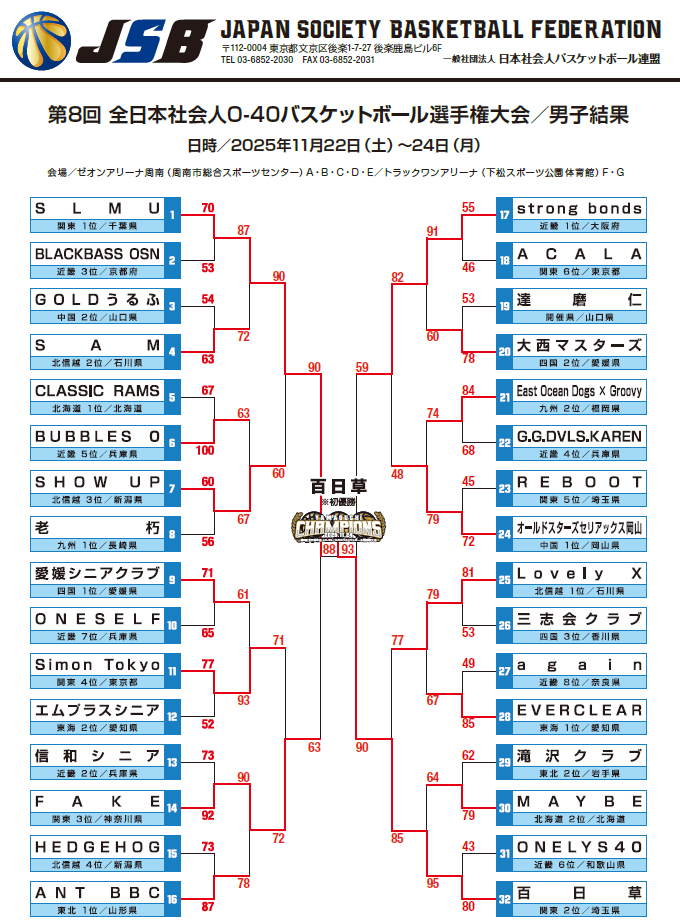 第8回 全日本O-40/O-50社会人バスケットボール選手権 山口大会