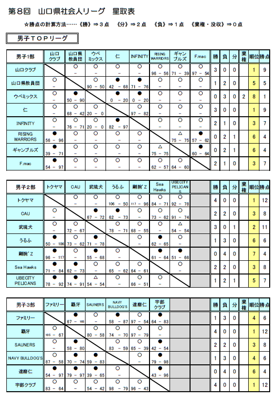 ※リーグ星取表(画像)をクリック(タップ)すると第3節結果とリーグ星取表(PDF版)が開きます。