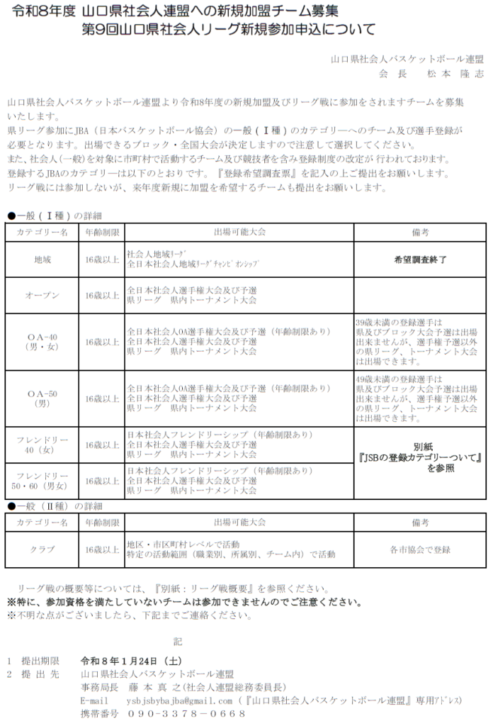 新規加盟、リーグ戦新規参加を希望されるチームはR8.1/24までに申込をお願いします※画像をクリック(タップ)するとPDF版が開きます