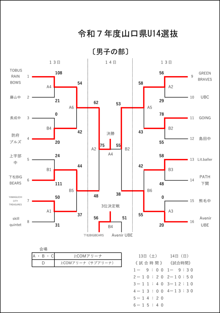 令和7年度山口県U14選抜新人バスケットボール大会