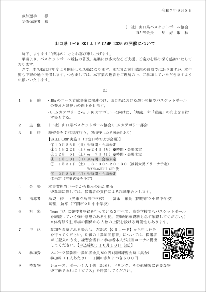 申込締切:令和7年10月10日(金) ※要項のQRコードから申し込んでください。