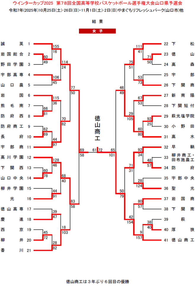 ウインターカップ2025 第78回全国高等学校バスケットボール選手権大会 山口県予選会