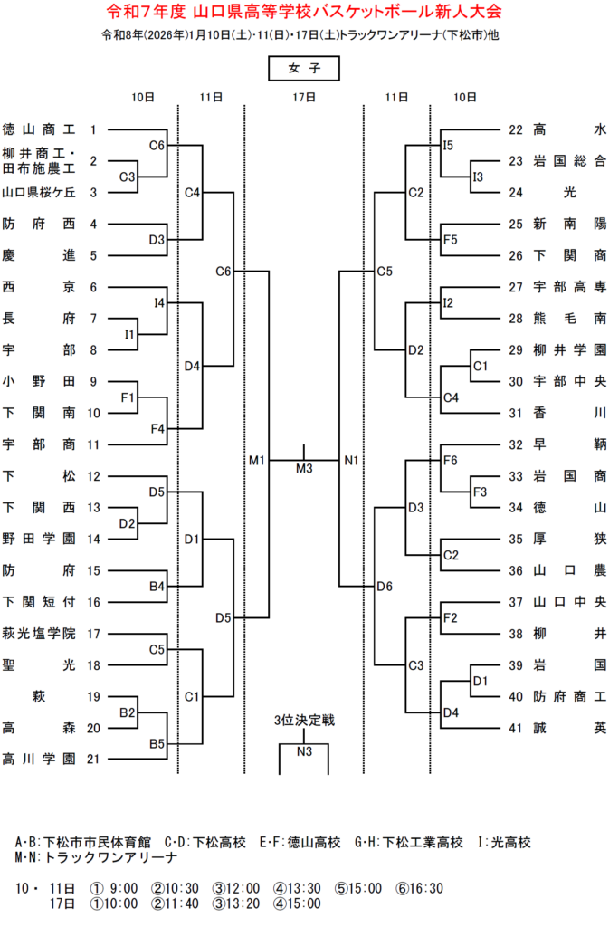 ※1位~3位のチームは、令和8年2月6日(金)~8日(日)に広島市で開催される中国高等学校バスケットボール新人大会に出場する権利と義務を有します。