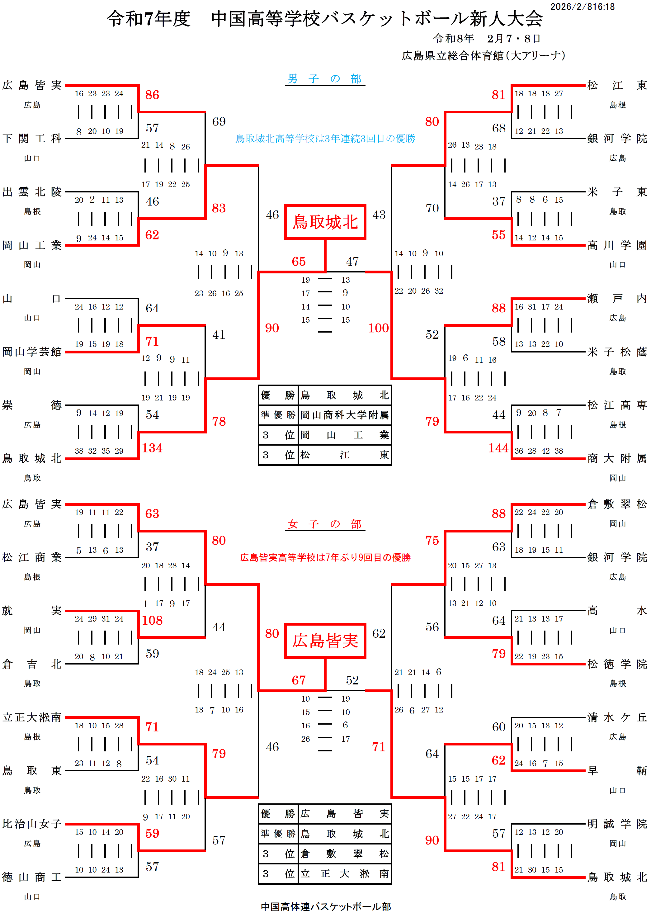 令和7年度中国高等学校バスケットボール新人大会