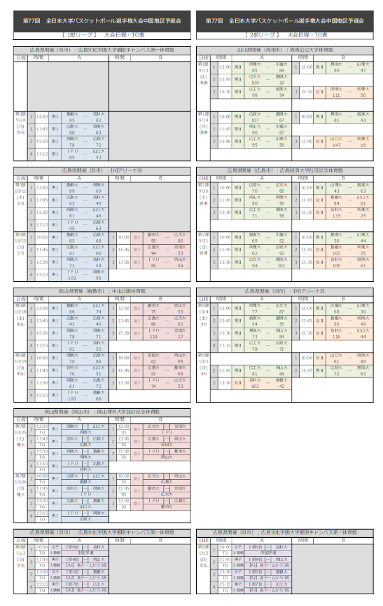 第77回 全日本大学バスケットボール選手権大会 中国地区予選会