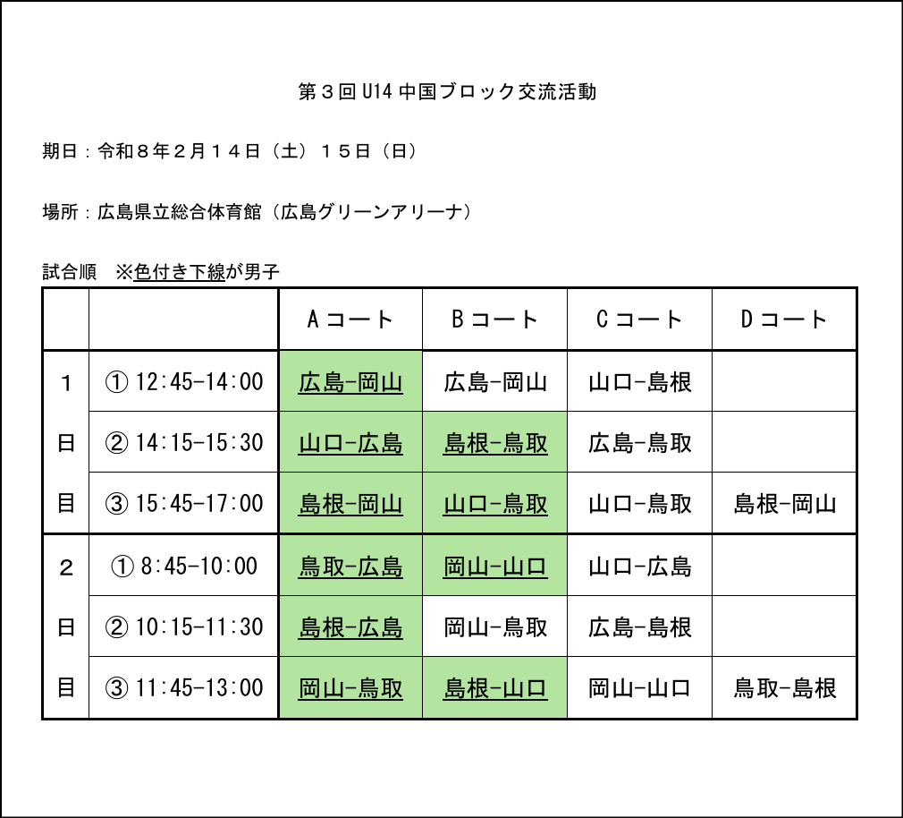 第3回U14中国ブロック交流活動